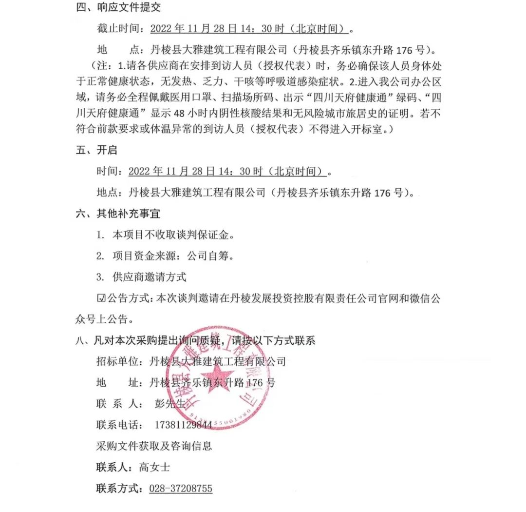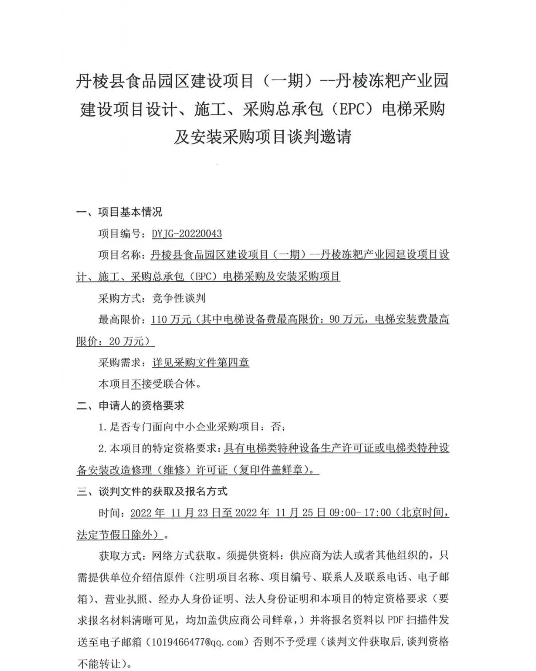 丹棱縣食品園區(qū)建設(shè)項目 (一期)--丹棱凍粑產(chǎn)業(yè)園建設(shè)項目設(shè)計、施工、采購總承包 (EPC) 電梯采購及安裝采購項目談判邀請公告