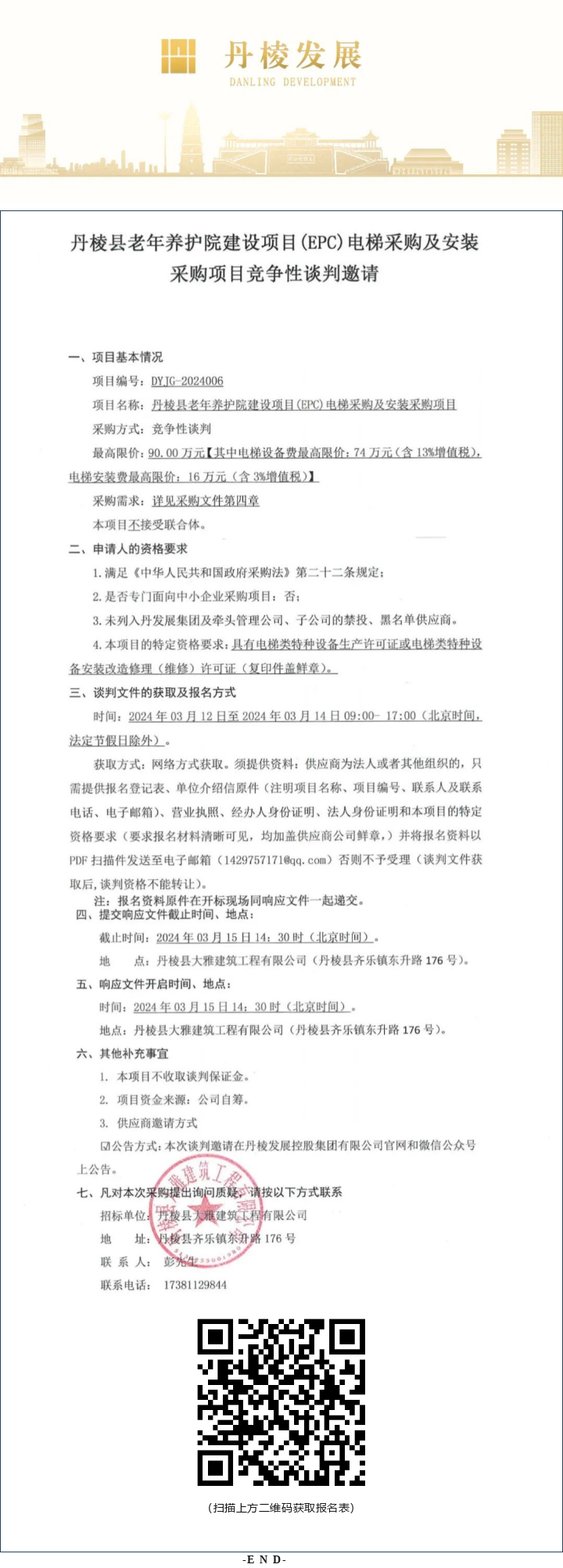 丹棱縣老年養(yǎng)護(hù)院建設(shè)項(xiàng)目(EPC)電梯采購(gòu)及安裝采購(gòu)項(xiàng)目競(jìng)爭(zhēng)性談判邀請(qǐng)公告