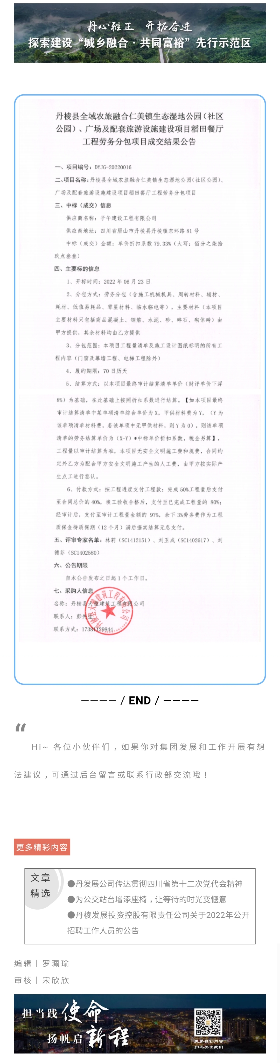 丹棱縣全域農(nóng)旅融合仁美鎮(zhèn)生態(tài)濕地公園(社區(qū)公園)、廣場(chǎng)及配套旅游設(shè)施建設(shè)項(xiàng)目稻田餐廳工程勞務(wù)分包項(xiàng)目成交結(jié)果公告