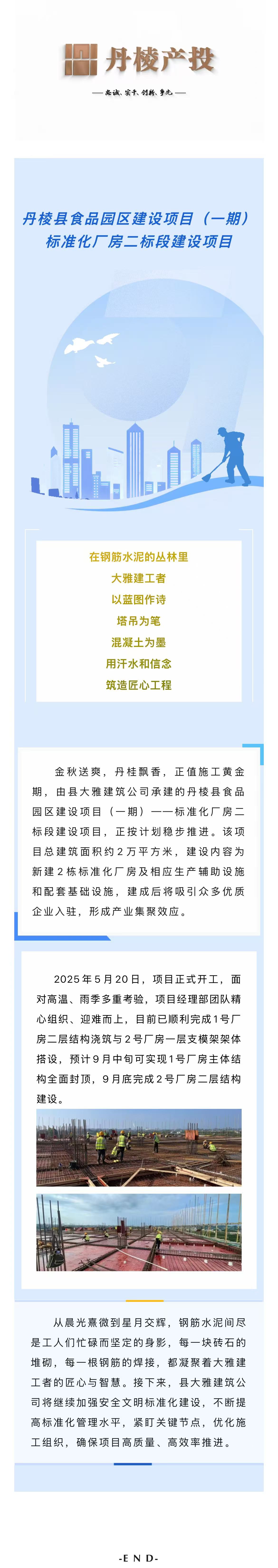 【縣大雅建筑公司】丹棱縣食品園區(qū)建設(shè)項(xiàng)目(一期)——標(biāo)準(zhǔn)化廠(chǎng)房二標(biāo)段建設(shè)項(xiàng)目穩(wěn)步推進(jìn)