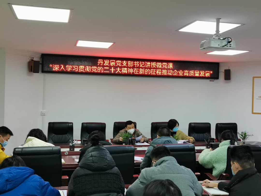 按照縣委《關(guān)于認(rèn)真學(xué)習(xí)宣傳貫徹黨的二十大精神的通知》相關(guān)要求,12月16日,丹發(fā)展黨支部召開黨員(擴大)會議,由支部書記講黨課,學(xué)習(xí)貫徹黨的二十大精神。丹發(fā)展公司全體黨員及員工參加。
